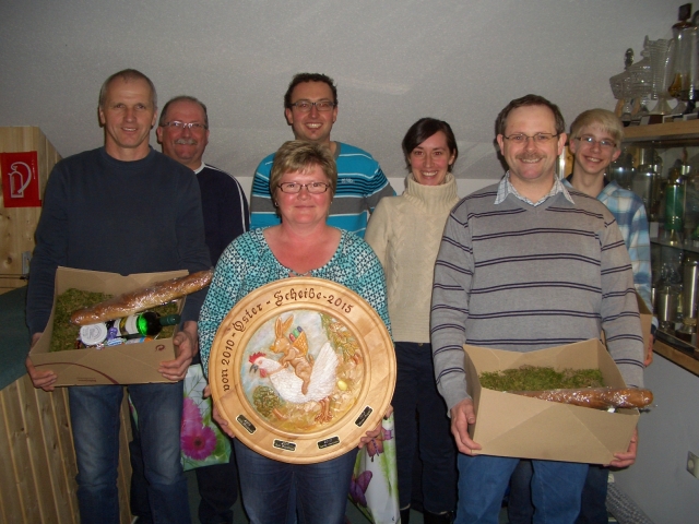 denen jeder Schütze versuchen musste auf 10 Schuss möglichst viele Punkte zu erreichen. Das glücklichste Händchen an diesem Abend hatte Petra Altmann mit 127 Punkten, welche sich sehr über den Gewinn der Osterscheibe freute.