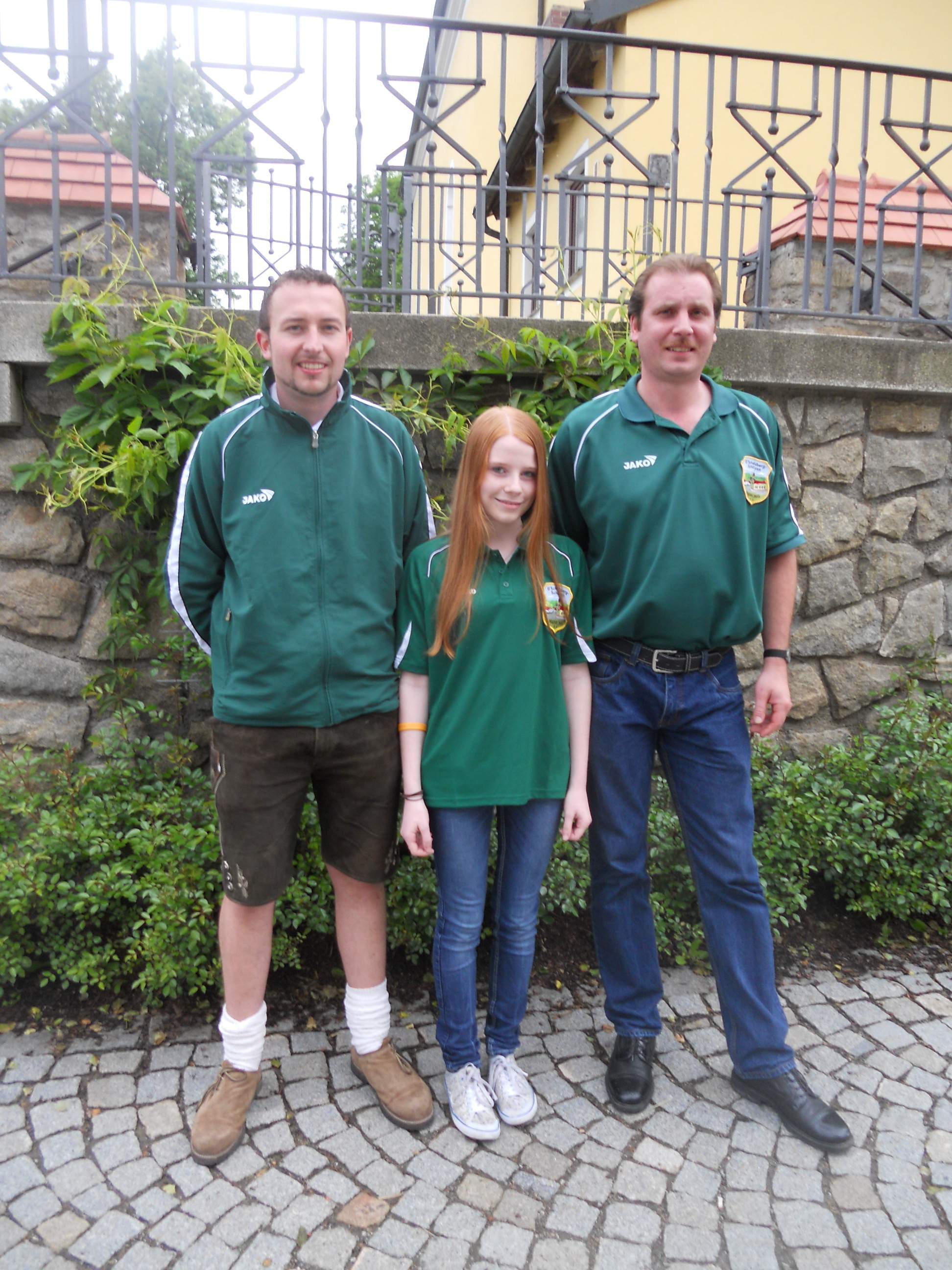 Bild: Verena Fleischmann mit den beiden Schützenmeistern Michael Kräh (links) und Matthias Larsen.