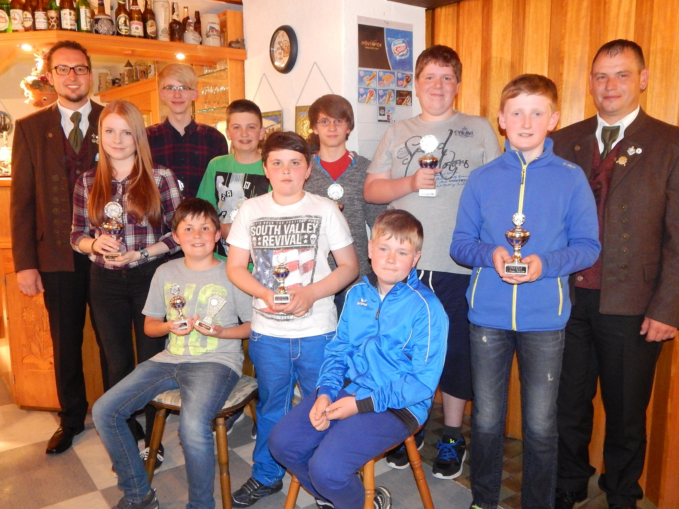 Mit Spannung wurde anschließend die Königsproklamation erwartet. Die bisherige Schützenkönigin 2015, Christine Kräh, wurde durch 'Schützenliesler' Paul Altmann entthront, ihr die Königskette abgenommen und als neuer Jugendkönig erhielt anschließend Stefan Amann die Königsscheibe und das Königszeichen, unter viel Beifall der Anwesenden, überreicht, durch die neue Schützenliesl Christine Kräh. 1. Jugend-Ritter wurde Josef Riederer und 2. Martin Oswald.
